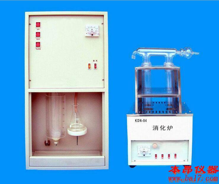 ??? KDN-08C型定氮儀整套裝置,由電加熱消化爐和蒸餾器兩大部分組成。KDN-08C型定氮儀消化爐,由于采用井式電加熱爐,增大了消化管受熱面,使消化管連同管內所注入的10mlH2SO4及試樣插入井式爐內加熱取得了較佳的熱效應,大大縮短了消化時間,消化管內逸出的SO2等有害氣體,通過消化爐上的排污管經抽吸泵從水中排入下水道,有效地抑制有害氣體的外逸,省略了實驗室中安裝毒氣通風櫥,試樣經40分鐘左右消化煮解,即能完全消化盡。KDN-08C型定氮儀消化爐為高檔數顯控溫消化爐,美觀大方,易于用戶操作使用。